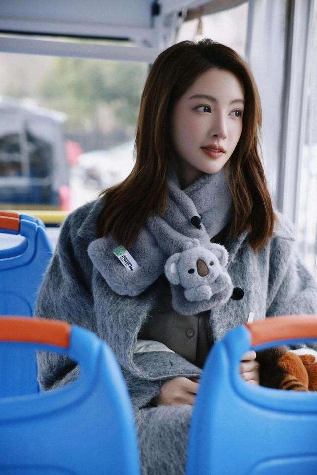 最让人眼前一亮的莫过于金晨脖子上戴的这条灰色考拉围巾啦,和大衣一样色系又毛茸茸的可爱考拉,为灰色大衣可能会带来的“成熟感”做了减法,增添一丝俏皮和减龄效果,同时也起到了保暖的作用呢。